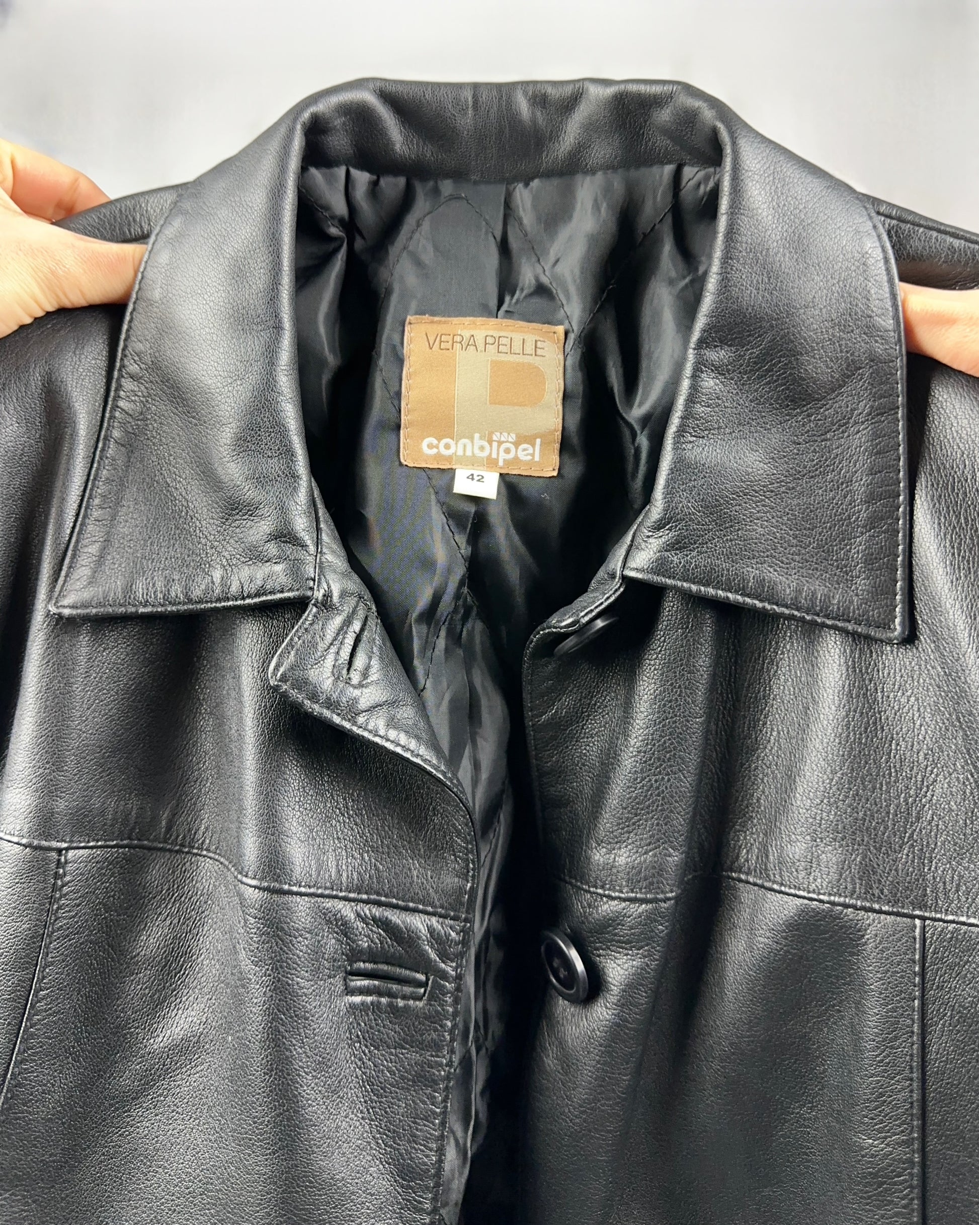 Blazer in vera pelle nera firmato Conbipel, un capo essenziale che unisce eleganza senza tempo e qualità artigianale. Realizzato con pelle autentica, garantisce durabilità e una patina che migliora con il tempo. La forma classica si adatta perfettamente a outfit formali e casual, offrendo versatilità per ogni occasione. Un investimento nel guardaroba che non passa mai di moda.