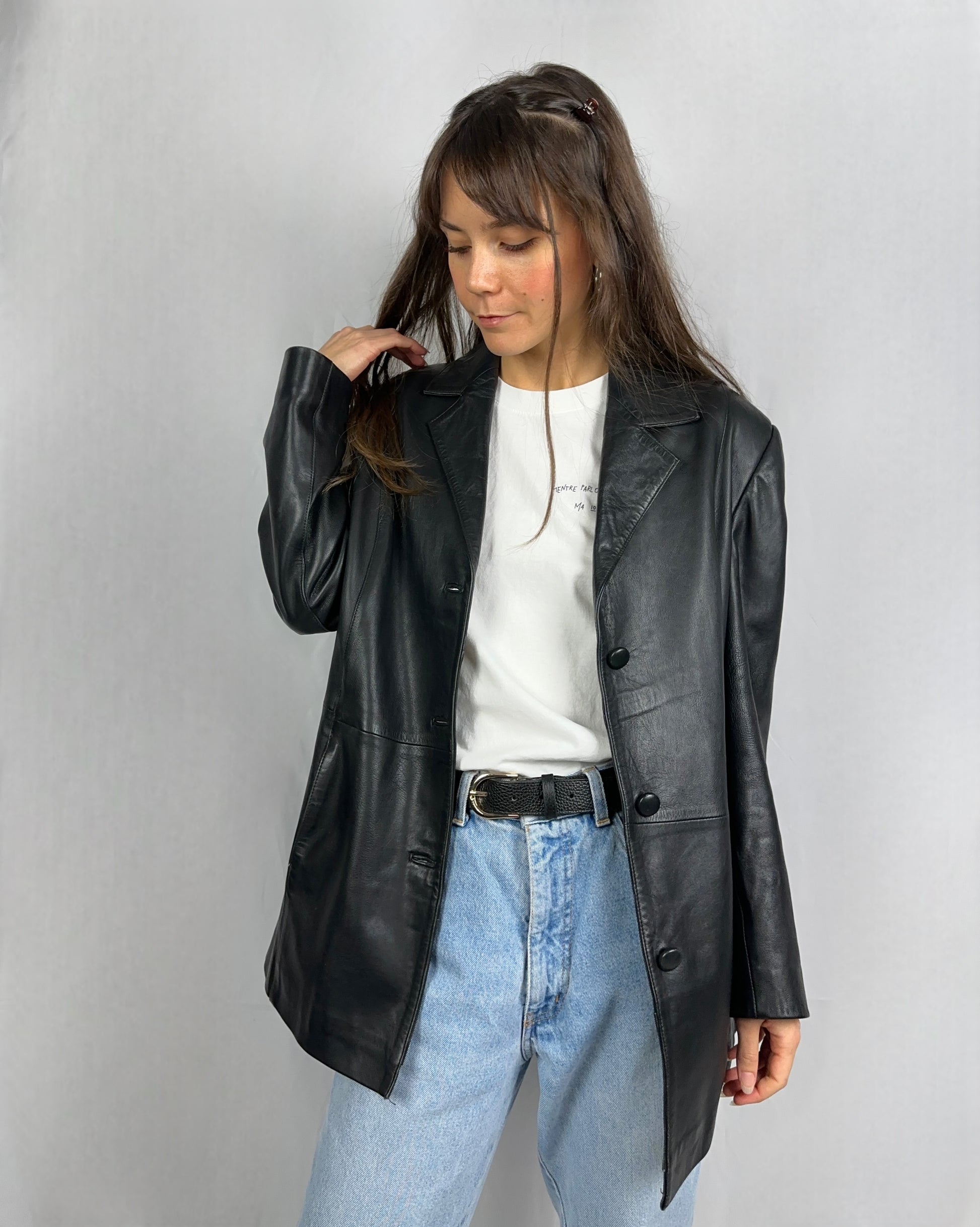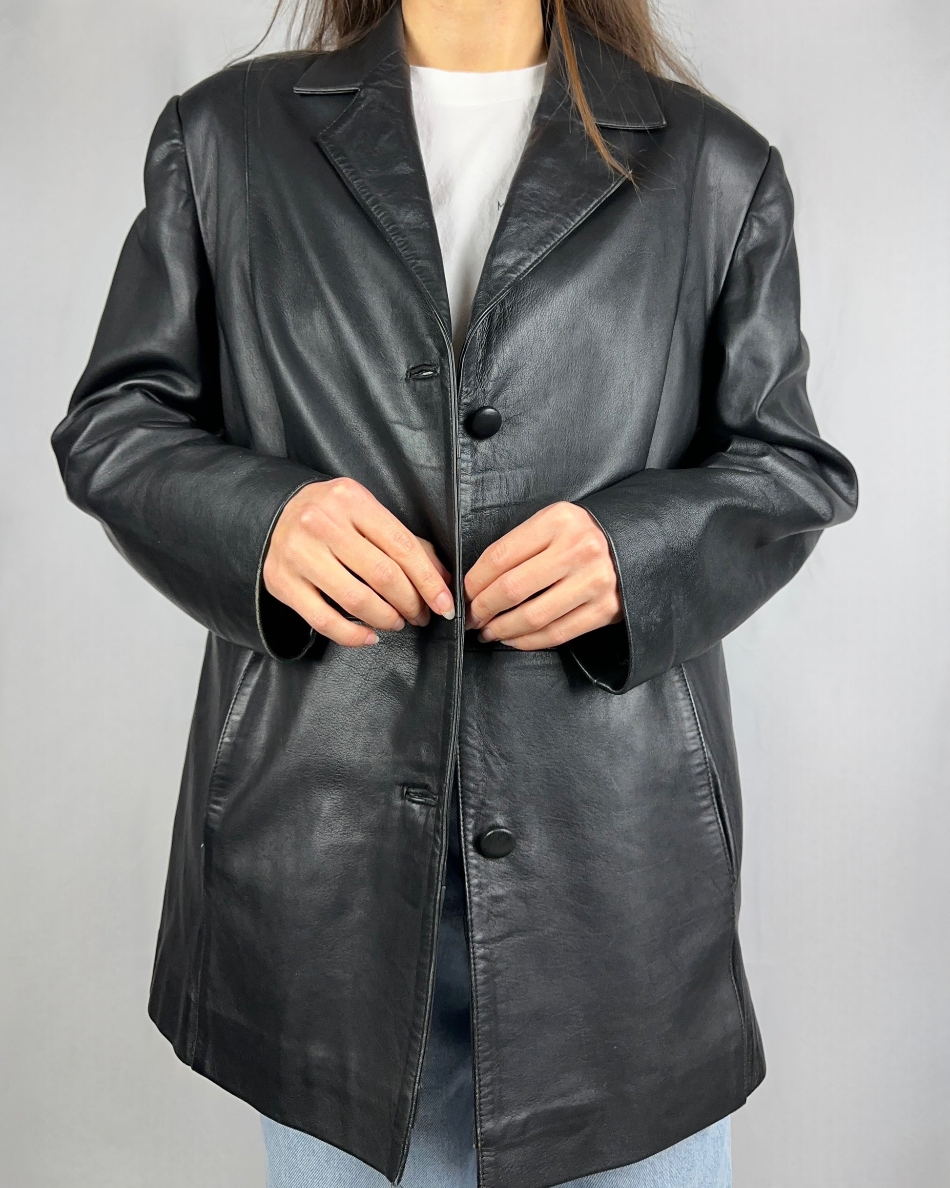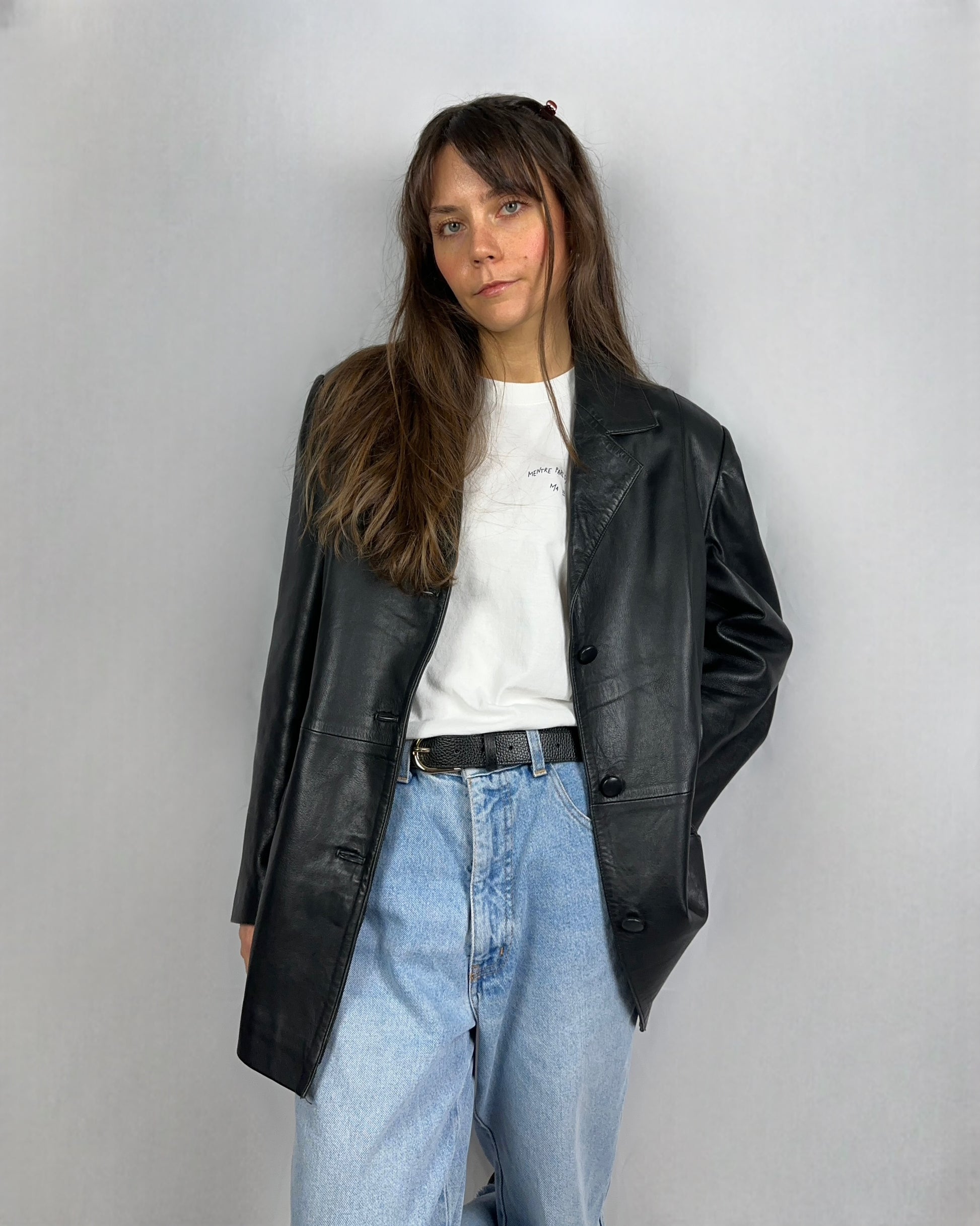 Blazer in vera pelle nera, un capo essenziale che unisce eleganza e versatilità. La qualità della pelle garantisce durabilità nel tempo, mentre la forma classica si adatta a molteplici occasioni, dal contesto professionale a look più sofisticati. Un capo che non passa mai di moda, perfetto per chi ricerca autenticità e semplicità raffinata nel proprio guardaroba.
