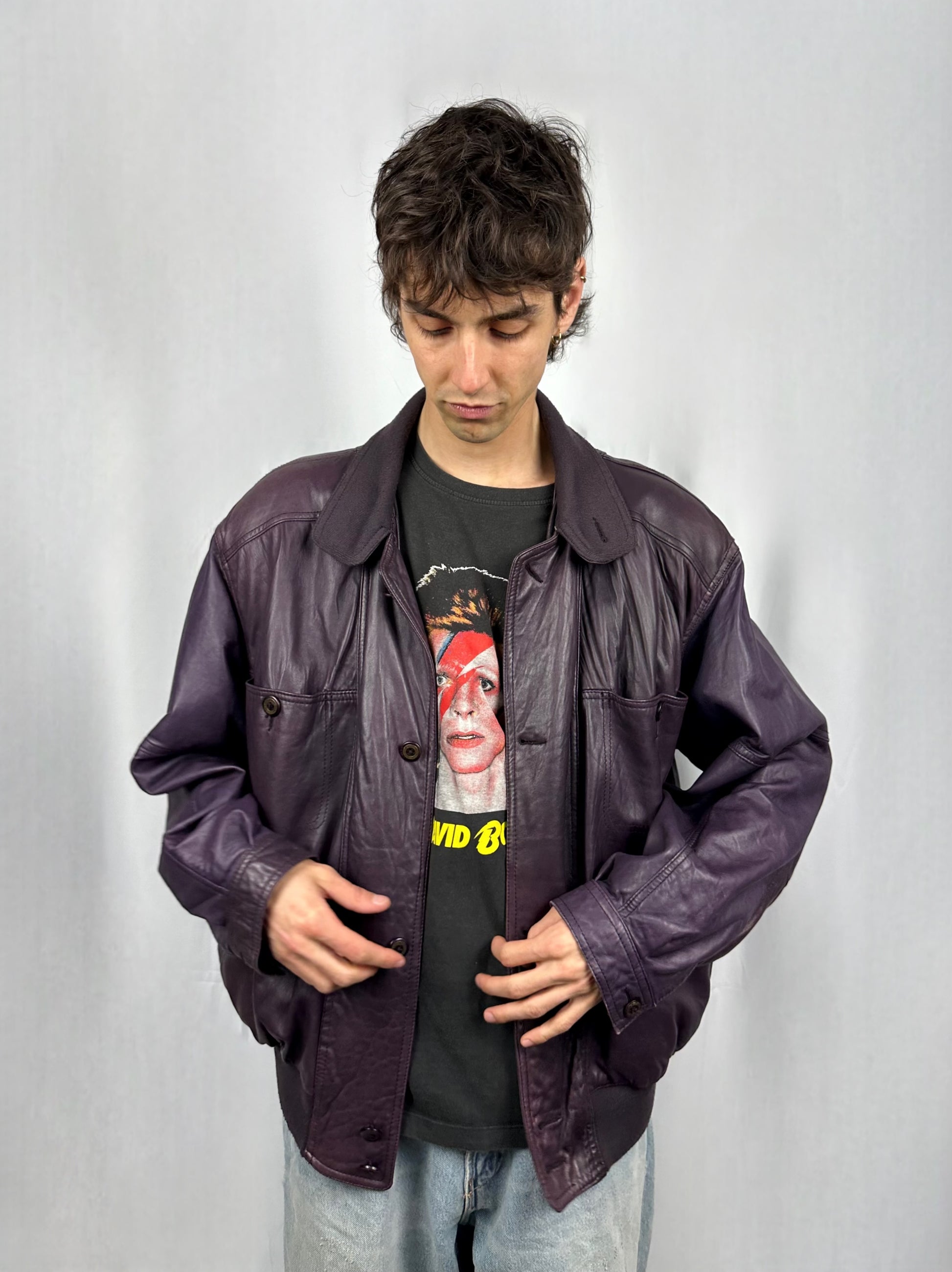 Questo bomber in vera pelle color prugna intenso con bottoni tono su tono è un pezzo davvero unico e particolare. Il design classico del bomber, con polsini e fondo più stretti ma morbidi, garantisce una vestibilità perfetta, mentre i dettagli curati esprimono il fascino senza tempo dello stile vintage.