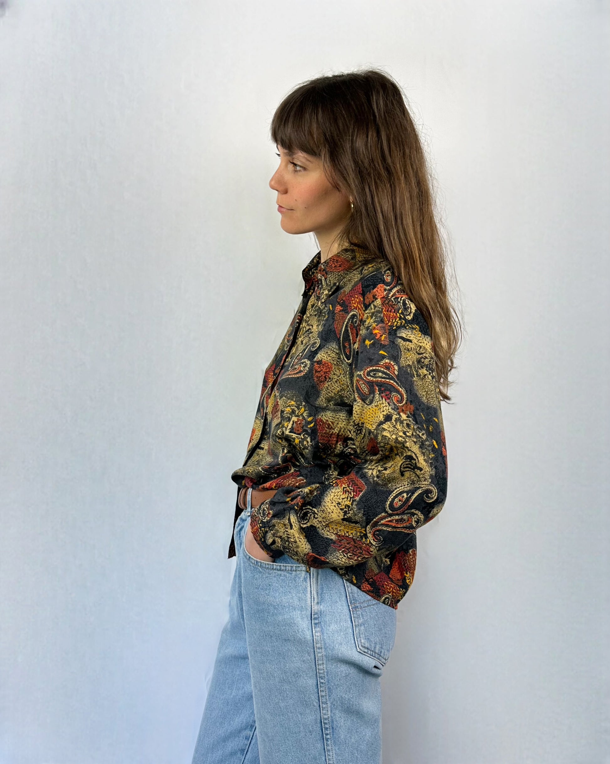 Originale e giocosa questa camicia vintage firmata Casucci è un concentrato di stile anni '80. Realizzata in tessuto leggero, presenta fantasie vivaci, stampe iconiche o dettagli grafici tipici dell’epoca e del brand.