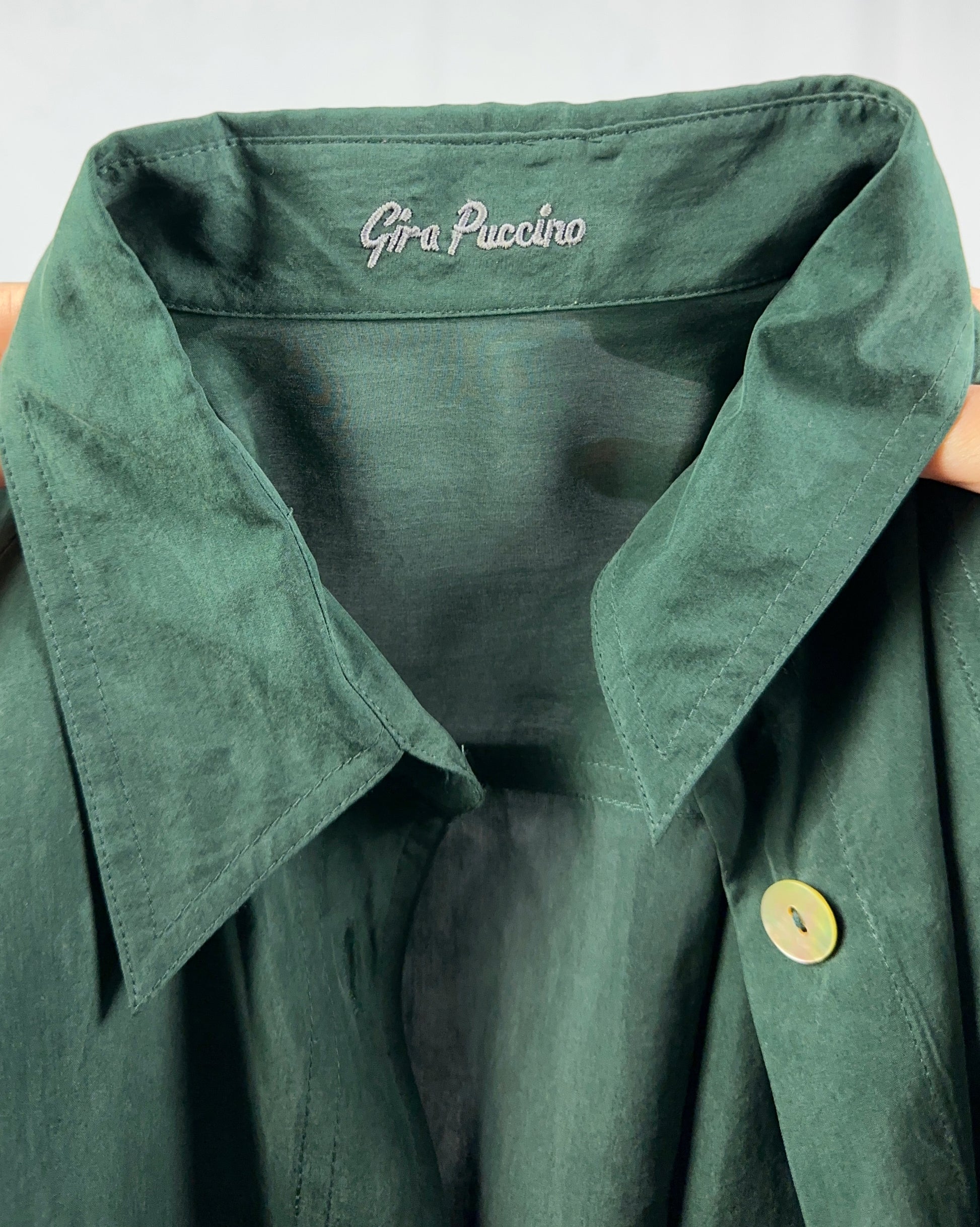 Camicia realizzata in pura seta con bottoni in madreperla, caratterizzata da una tonalità verde bosco profonda. Il tessuto naturale garantisce una traspirazione ottimale e una morbidezza incomparabile sulla pelle. Ideale per occasioni formali o per elevare lo stile quotidiano con eleganza discreta.