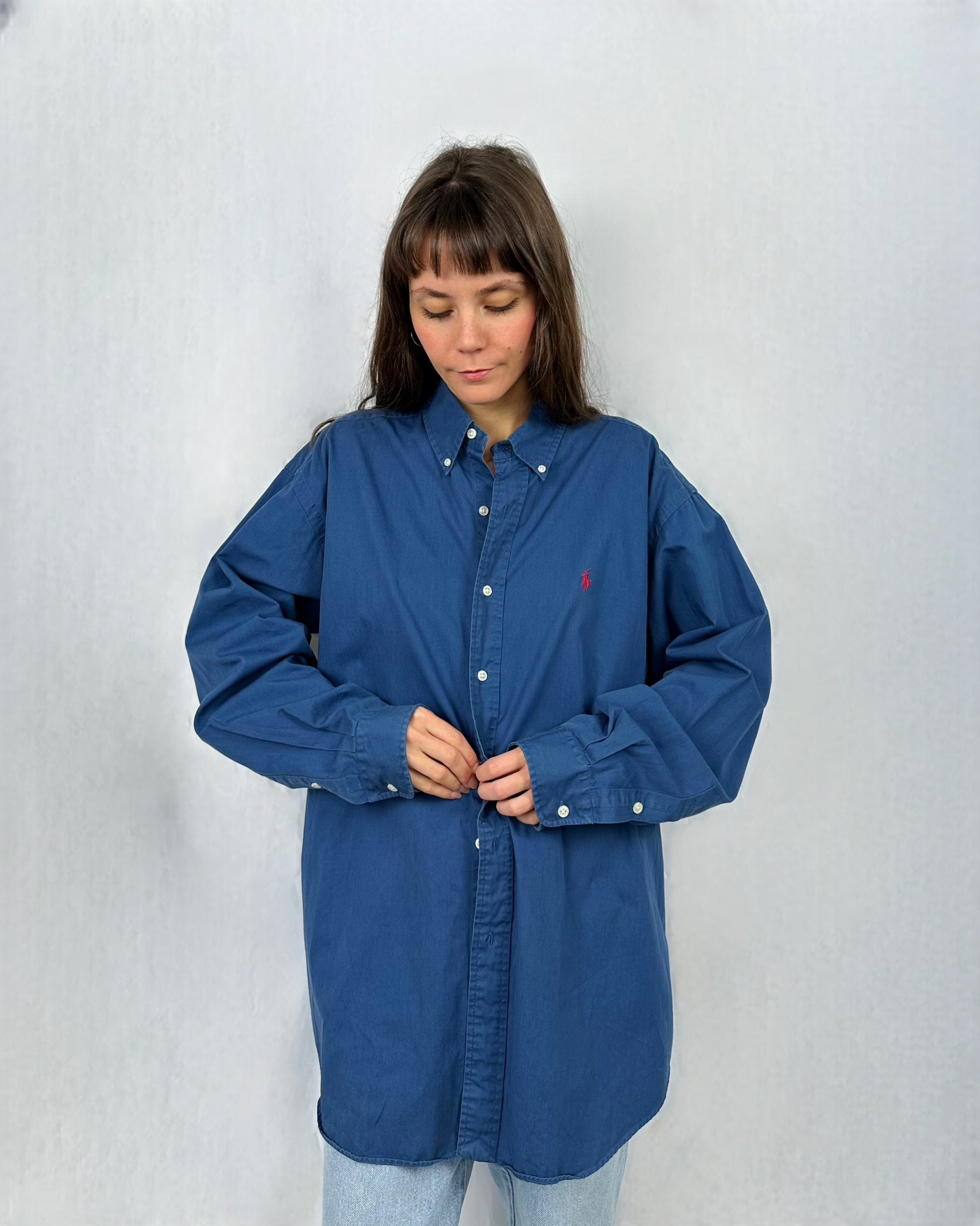 Camicia Ralph Lauren in morbido cotone blu, dallo stile classico e raffinato.