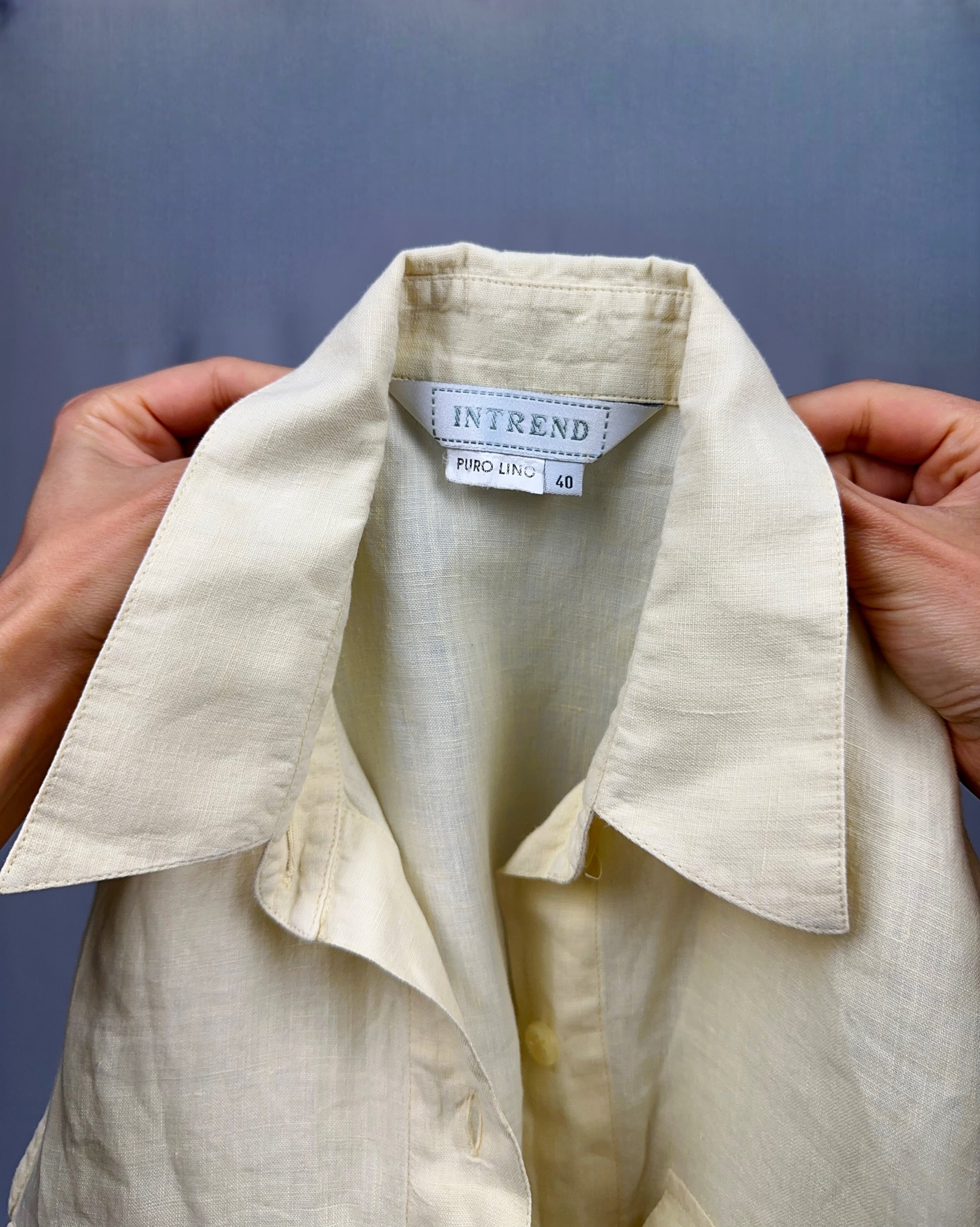 Semplice e leggera, questa canotta color burro firmata Intrend è realizzata in puro lino, un tessuto naturale noto per la sua freschezza e traspirabilità, perfetto per le giornate più calde. Il delicato color burro conferisce al capo un’eleganza sobria e versatile, mentre la chiusura frontale con piccoli bottoncini aggiunge un dettaglio funzionale e decorativo, rendendo la canotta perfetta sia per outfit casual che più curati.