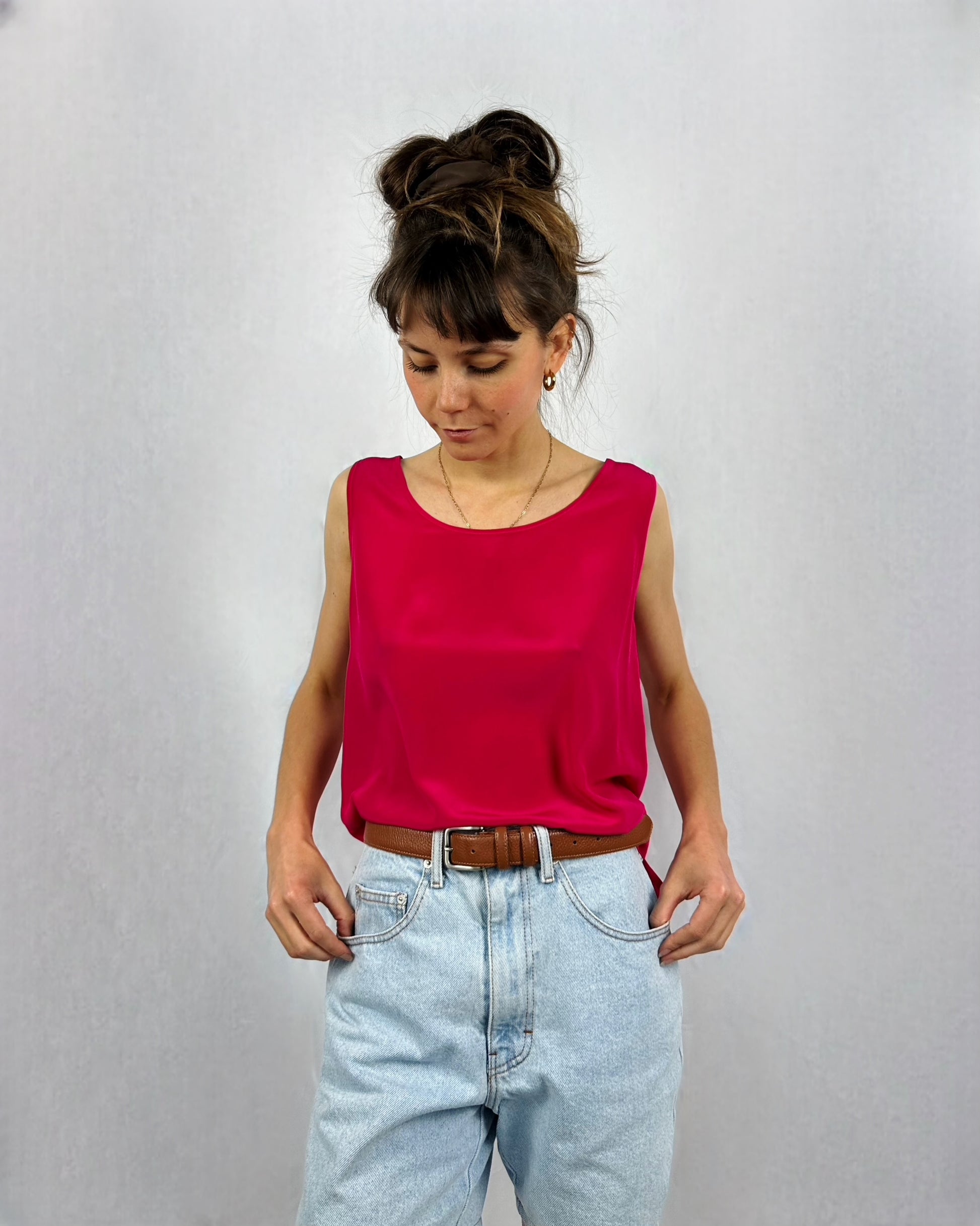 Canotta in pura seta fucsia