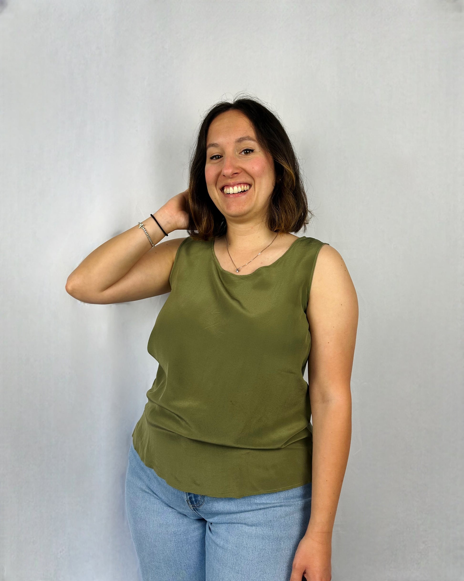 Canotta in pura seta verde