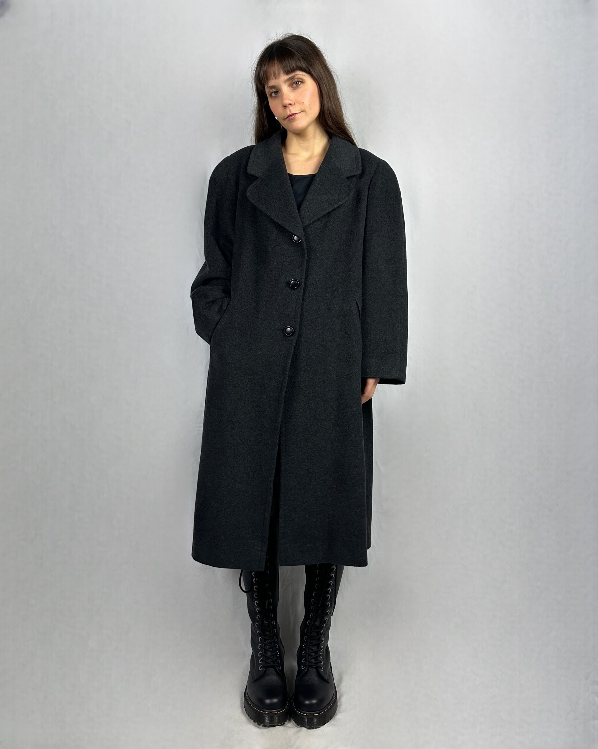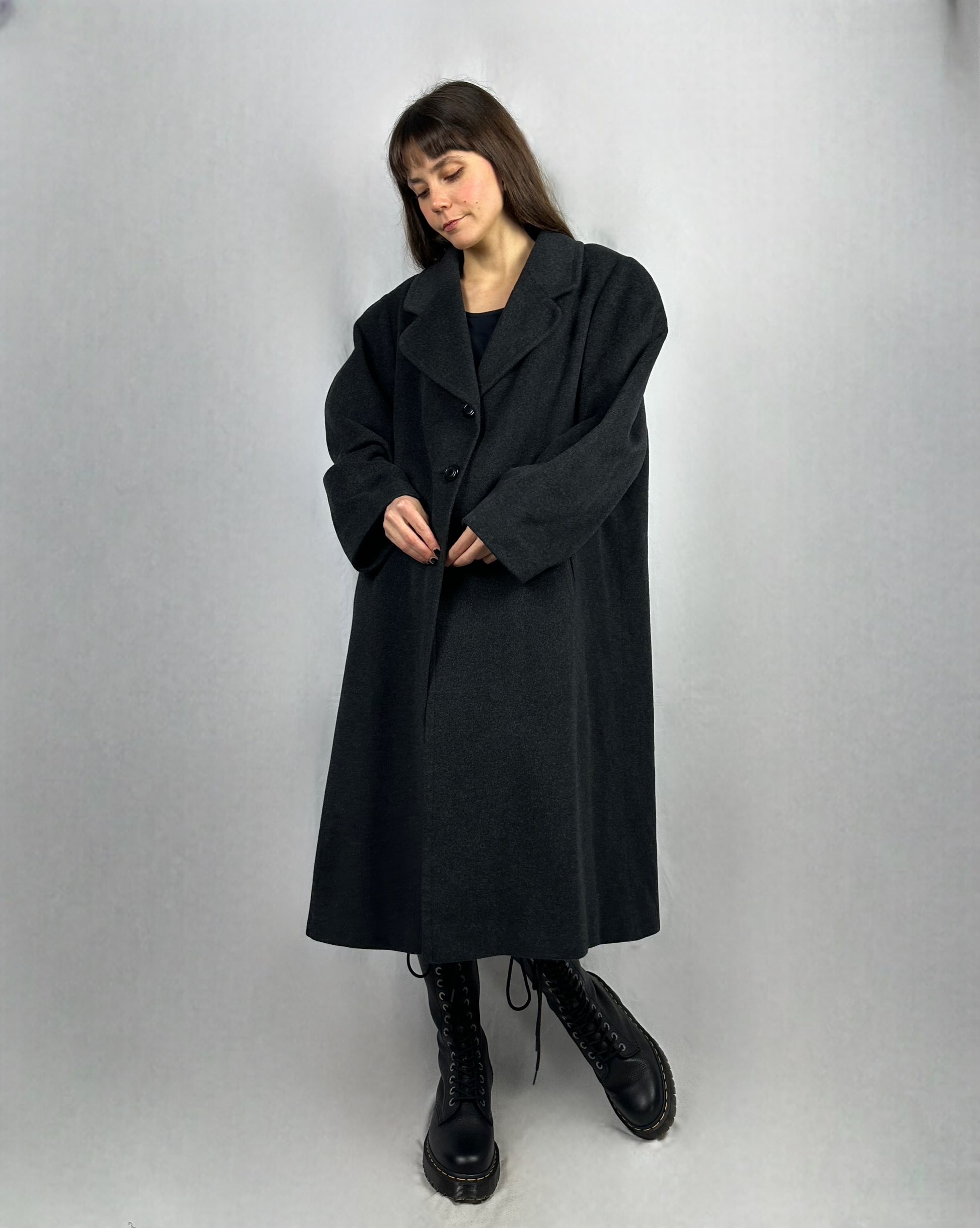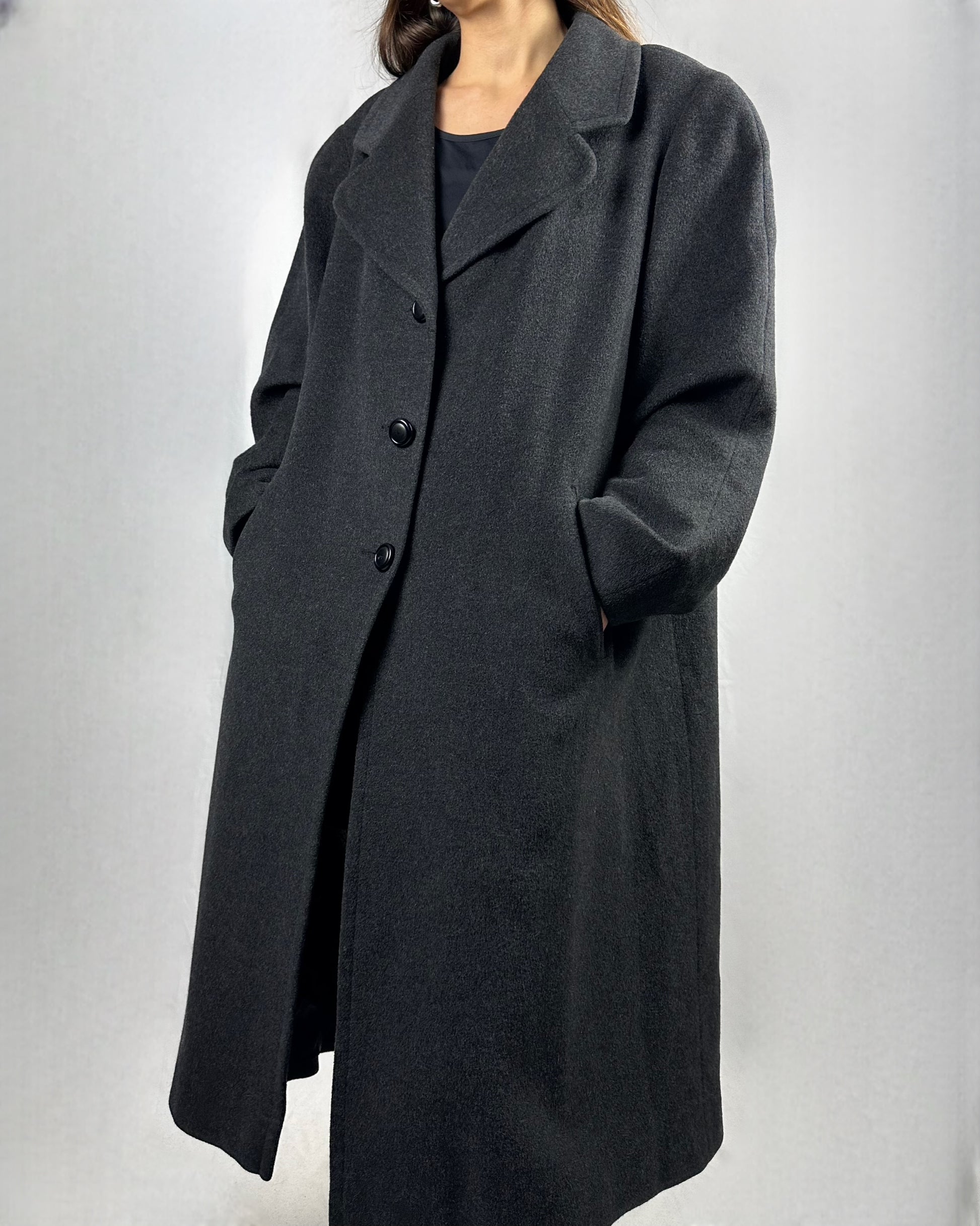 Elegante cappotto in lana, caratterizzato da una tonalità antracite sofisticata che si abbina facilmente a qualsiasi guardaroba. La struttura in lana garantisce isolamento termico eccellente e traspirabilità, mantenendo il calore senza appesantire. Tagli classici e linee raffinate lo rendono un capo versatile, ideale sia per occasioni formali che per l'uso quotidiano. La qualità della fibra assicura durabilità nel tempo e un aspetto impeccabile stagione dopo stagione.