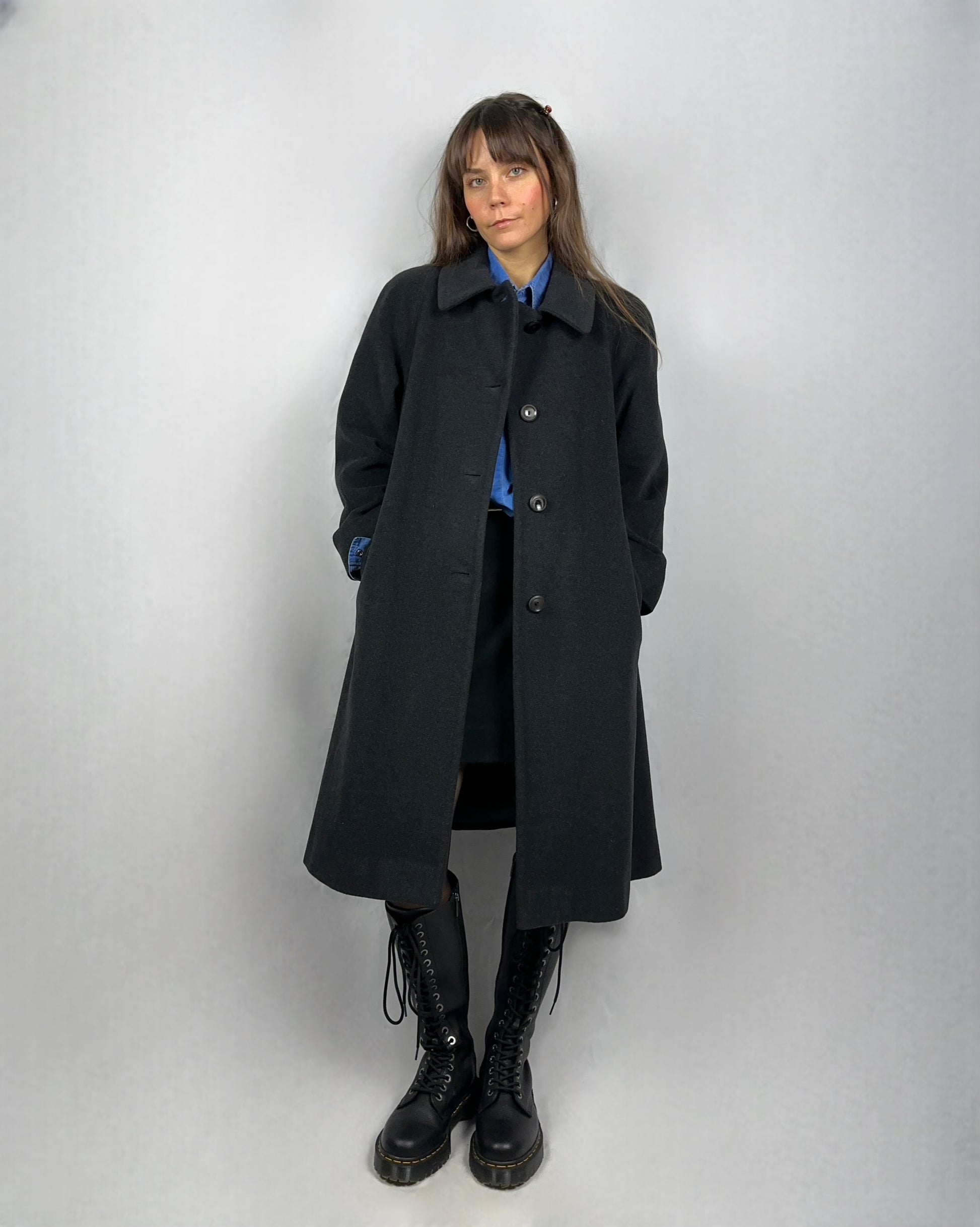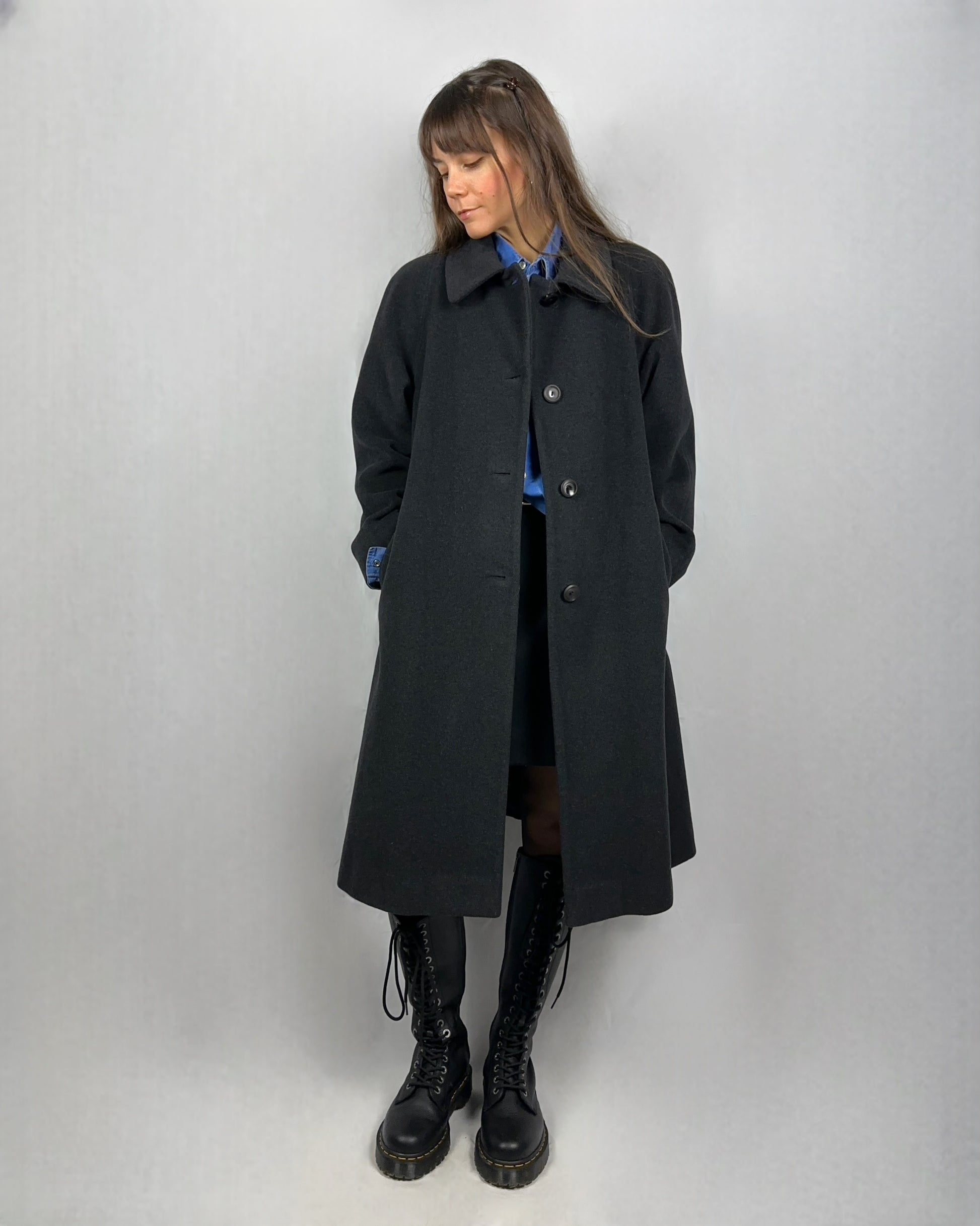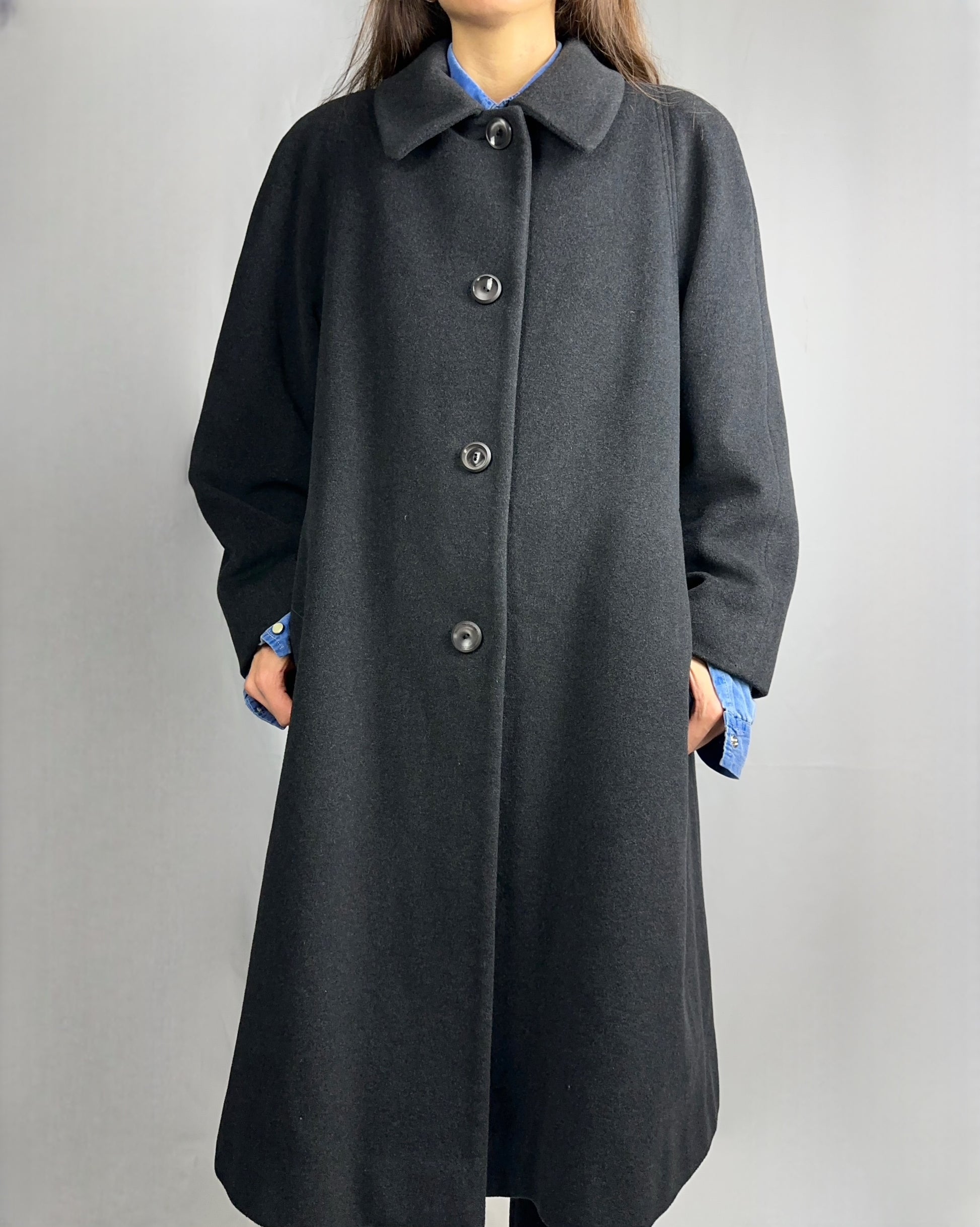Elegante cappotto in lana vergine, realizzato in una tonalità di grigio antracite. Il tessuto di qualità superiore garantisce calore e traspirabilità, mantenendo la forma nel tempo. Ideale per le stagioni fredde, questo capo rappresenta un investimento in stile e comfort senza tempo.