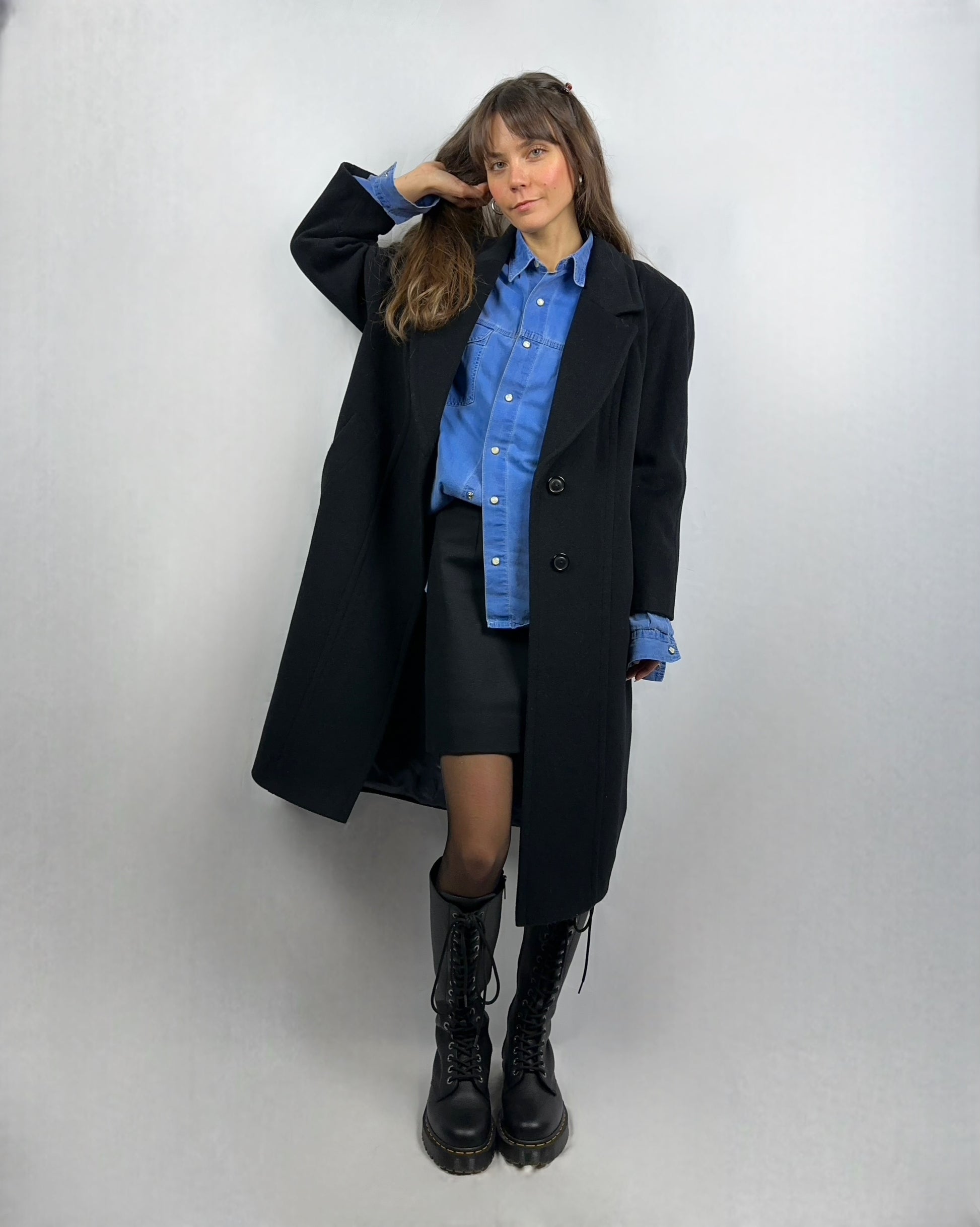 Elegante cappotto realizzato in pregiata miscela di lana e cashmere, che garantisce calore e morbidezza eccezionali. La tonalità nero classico si abbina facilmente a qualsiasi guardaroba, mentre la composizione in fibre naturali assicura traspirabilità e durata nel tempo. Un capo senza tempo.