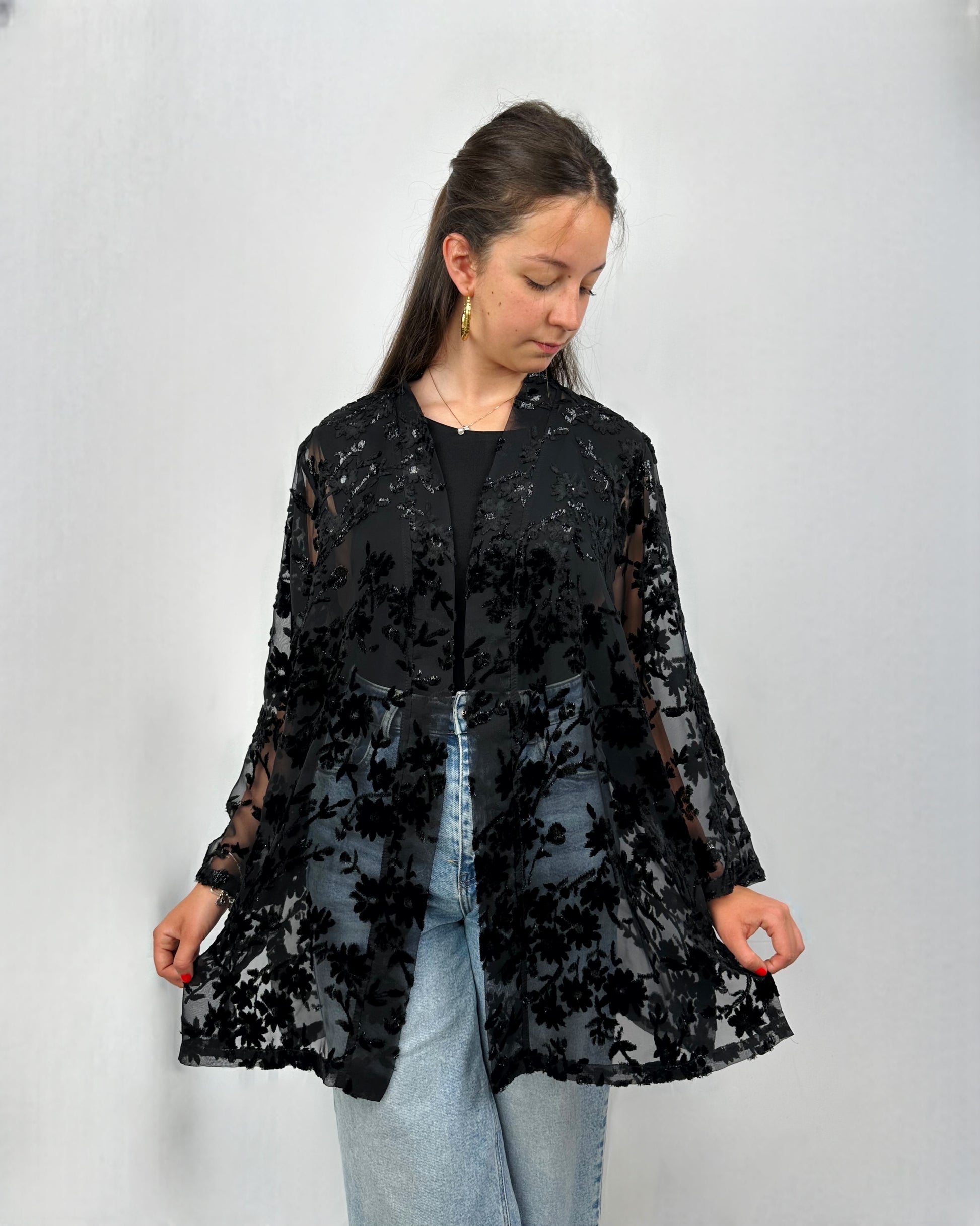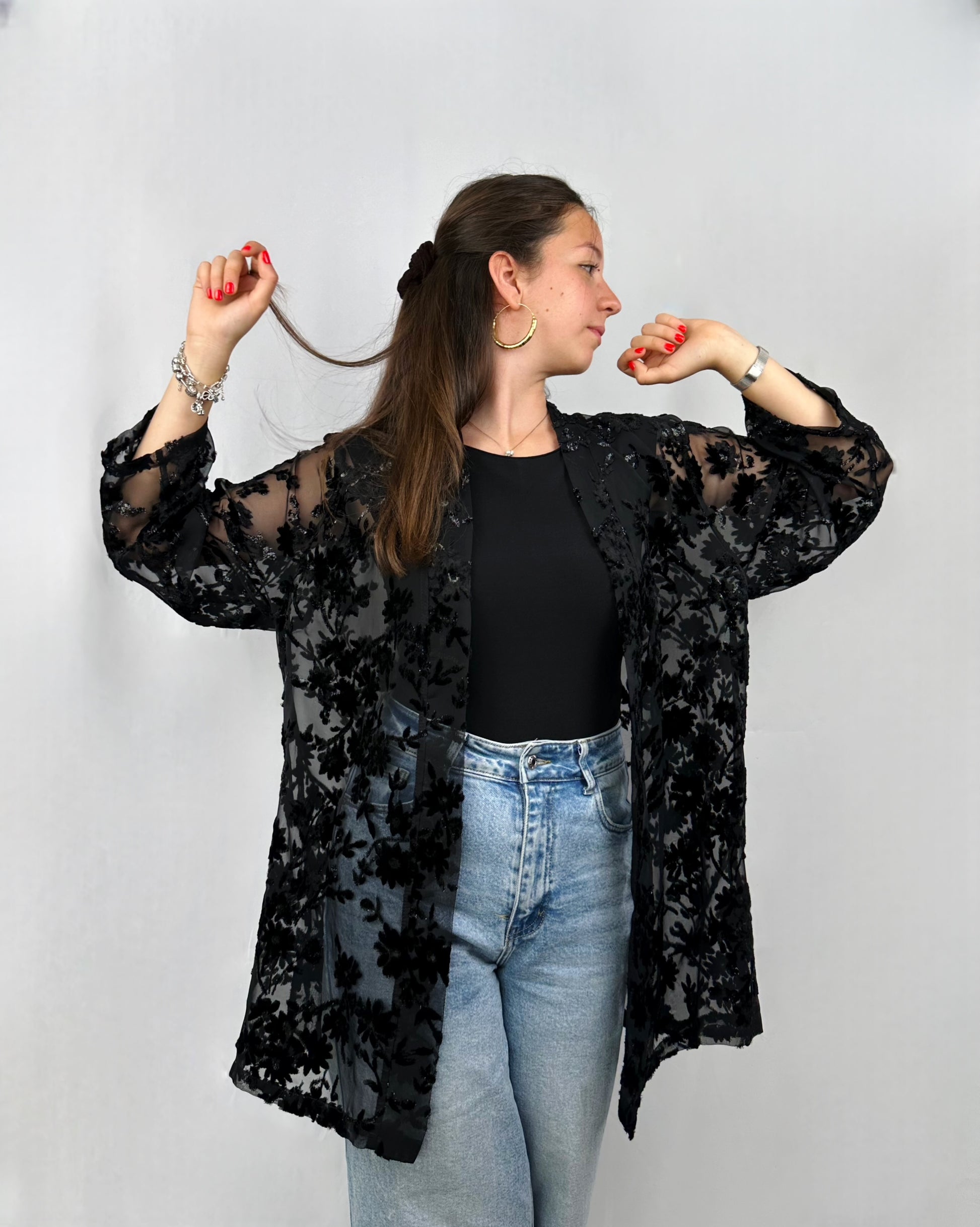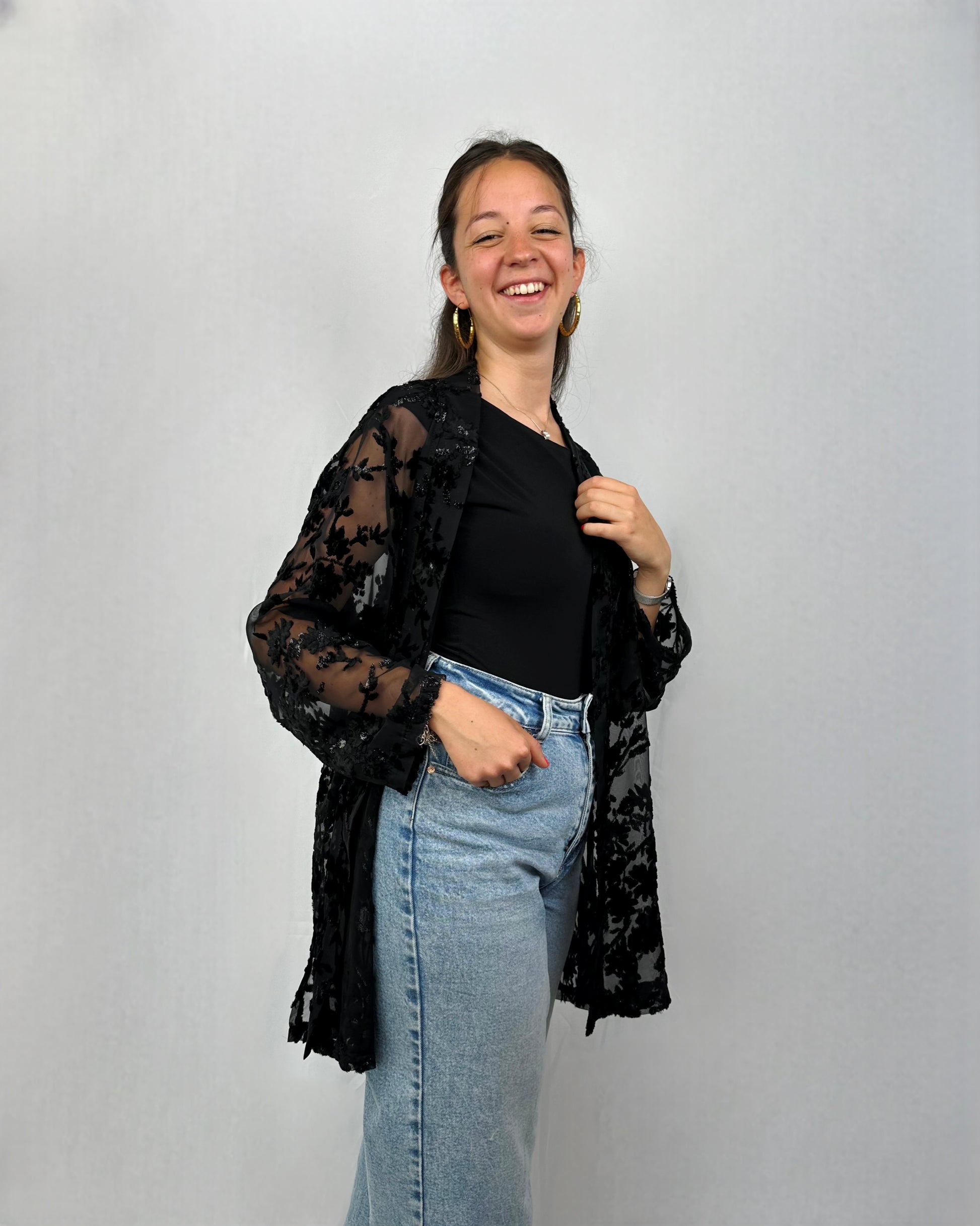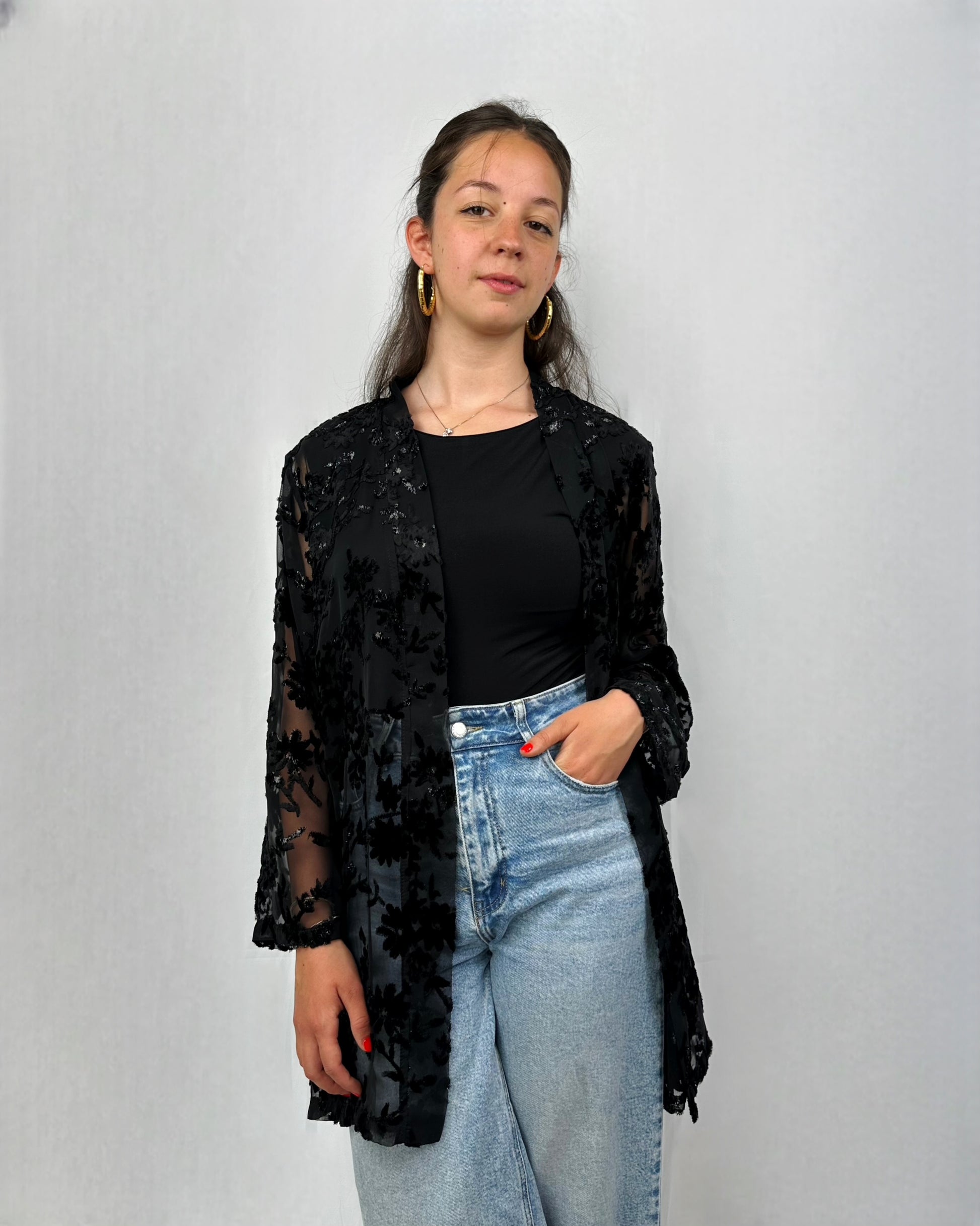 Elegante e versatile, questo "coprispalle" è perfetto da indossare la sera, magari sopra ad una semplice canotta nera, ma anche di giorno o in spiaggia sopra al costume. Composto da viscosa e poliestere.
