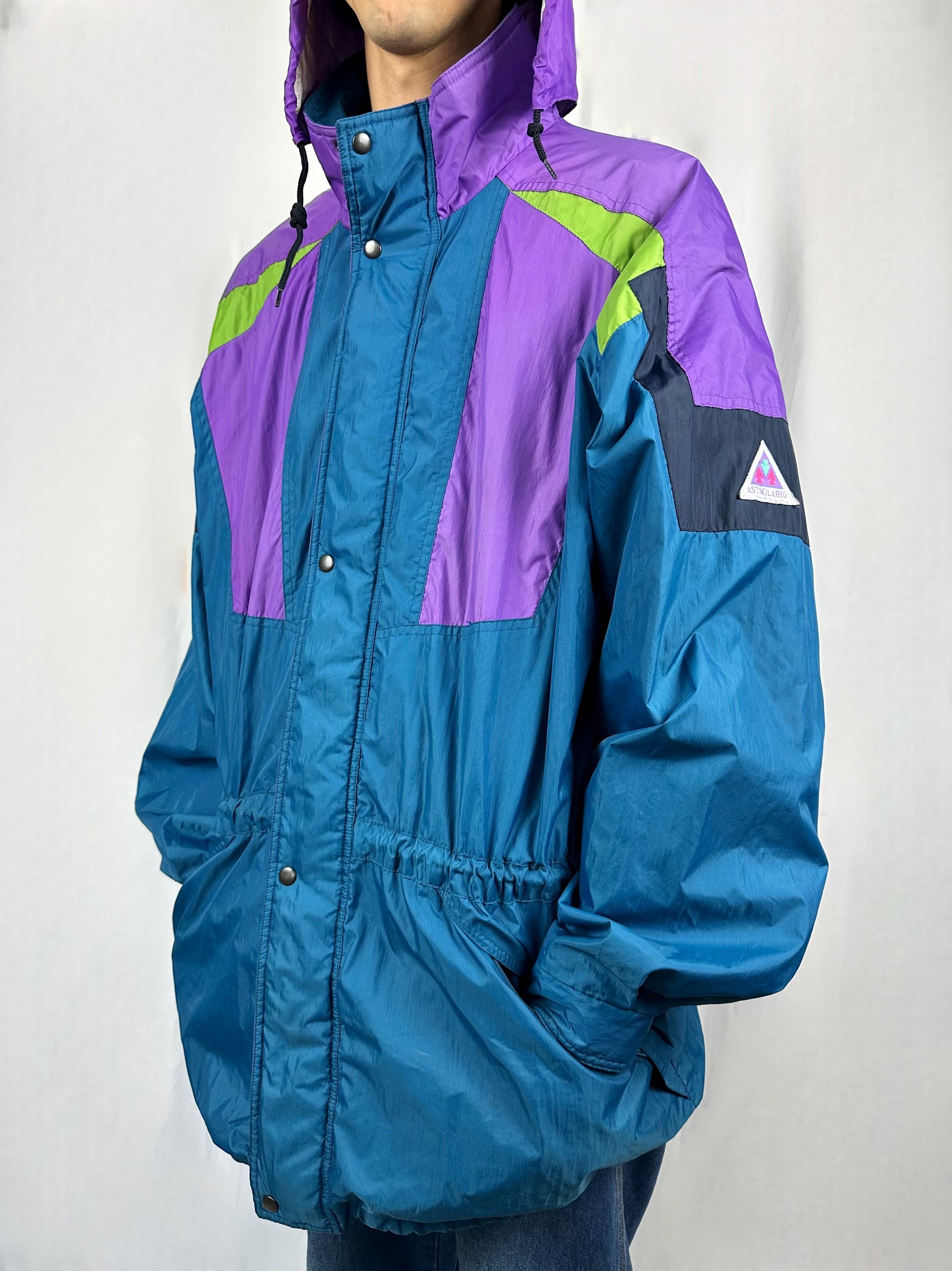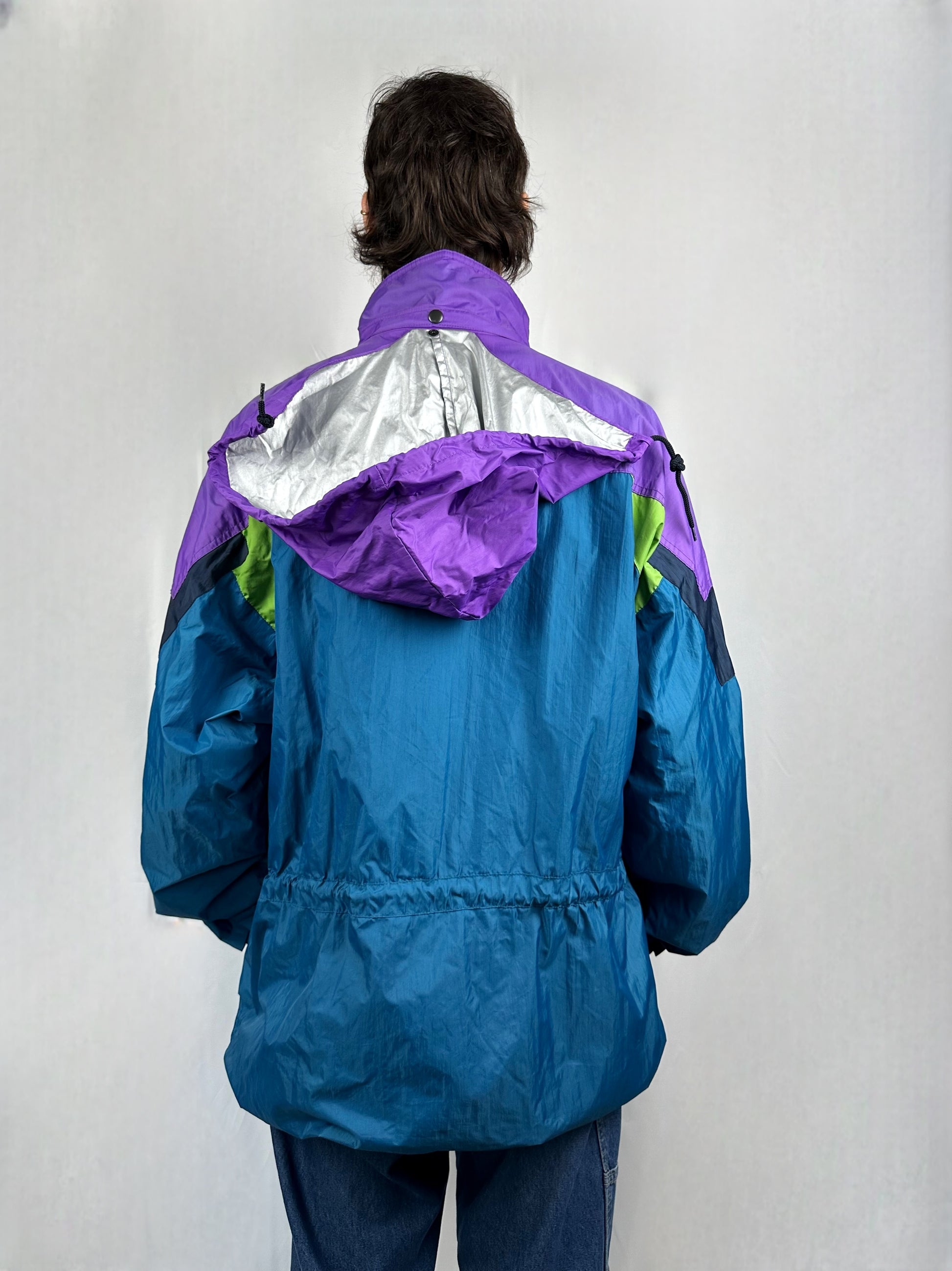 Per aggiungere un tocco di originalità e stile al guardaroba questo spolverino lungo vintage è l'ideale, un capo che cattura subito l'attenzione grazie alla combinazione di viola e blu accesi. Comodo, unico e audace, perfetto per ogni occasione e per dare carattere agli outfit quotidiani.
