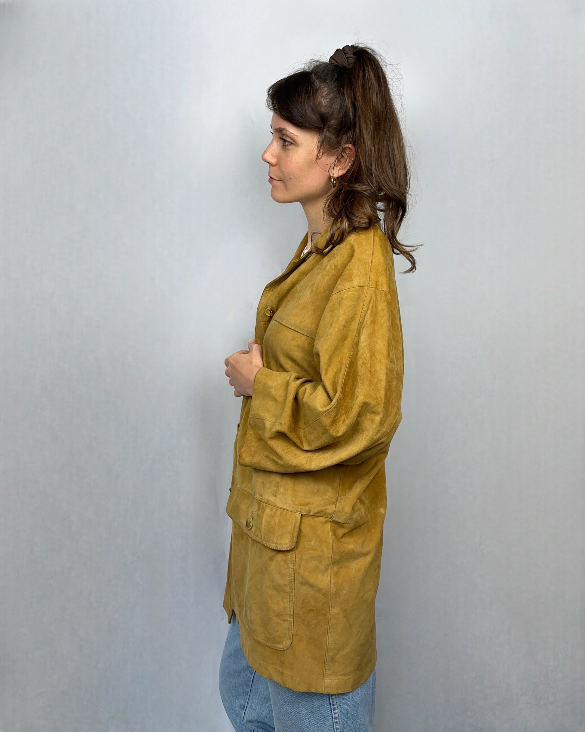 Questa giacca firmata Les Marées è realizzata in tessuto suede (pelle scamosciata), morbido al tatto e dall’aspetto vellutato. Il colore caramello, caldo e avvolgente, dona carattere al capo senza rinunciare alla versatilità. Il taglio lungo e morbido rende la giacca ideale per la mezza stagione, perfetta da indossare aperta su jeans e t-shirt. Linee pulite, tasche funzionali e dettagli ben rifiniti esprimono uno stile casual ma attento.