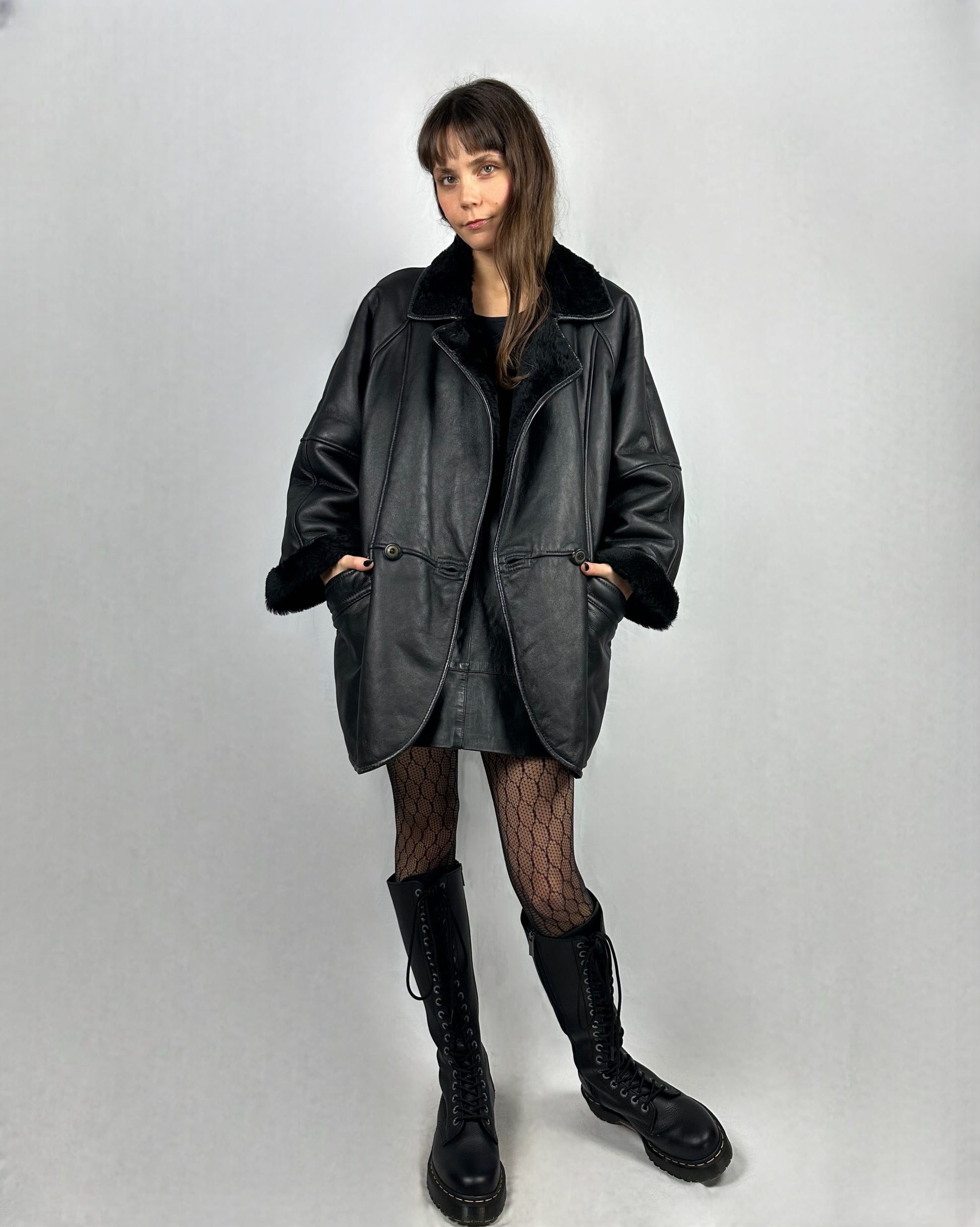 Montone in pelle nera liscia, caratterizzato da una finitura esterna raffinata e uniforme. Questo capo rappresenta un'ottima scelta per chi ricerca qualità artigianale e versatilità stilistica. La pelle liscia garantisce facilità di manutenzione e una patina che migliora con il tempo, sviluppando un carattere unico. Ideale per creare outfit sofisticati sia in contesti formali che casual, il montone nero si distingue per la sua capacità di adattarsi a molteplici combinazioni di abbigliamento.