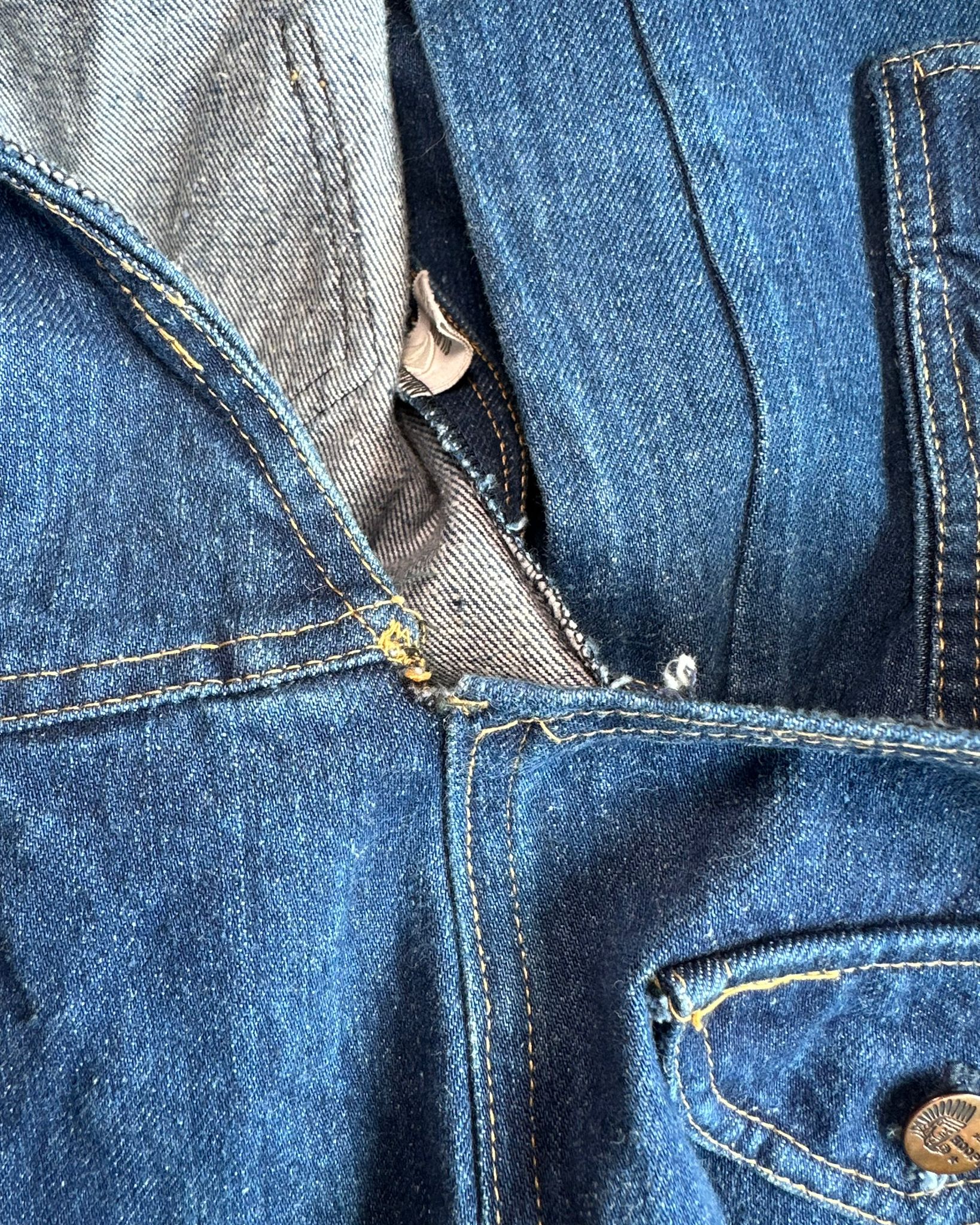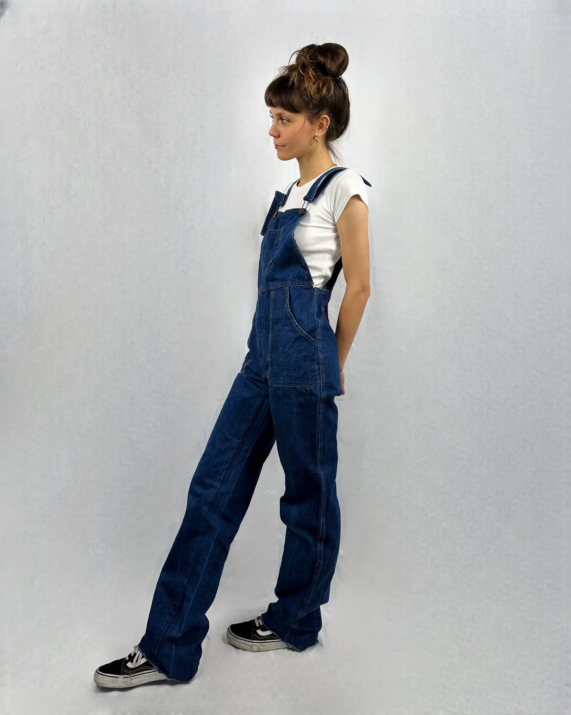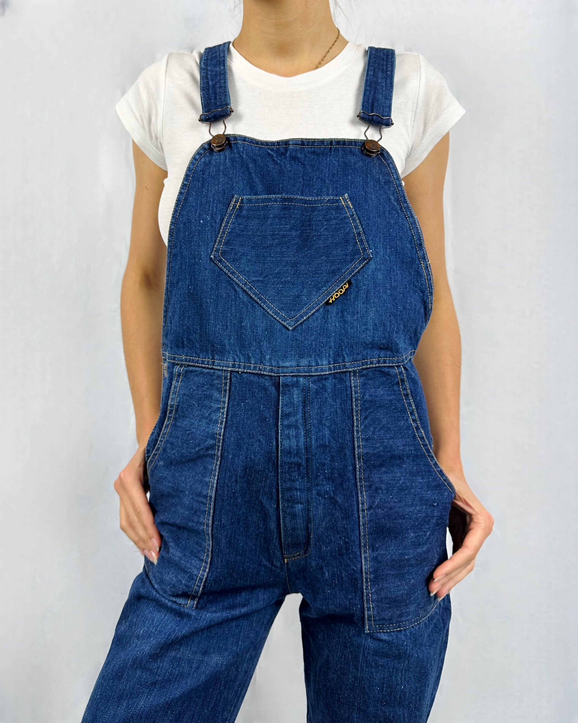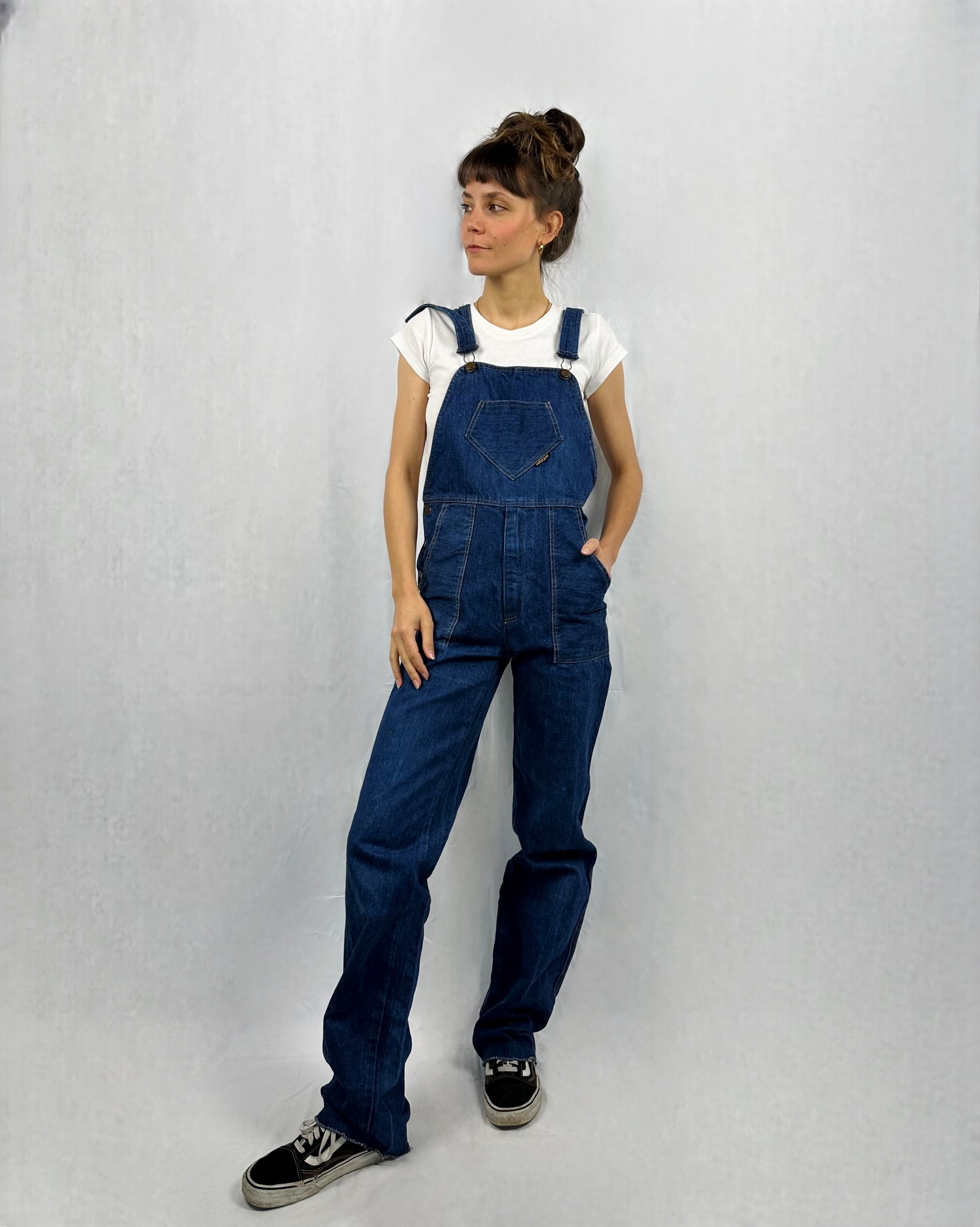 Salopette a pantaloni lunghi in jeans blu scuro, dal taglio ispirato agli anni ’70, firmata Hoopi. Il denim è corposo e robusto, con una vestibilità strutturata che si apre in una zampa leggermente a elefante, donando slancio e un tocco rétro. Il corpetto con pettorina e bretelle regolabili mantiene lo stile iconico della salopette, mentre i dettagli — cuciture a contrasto, bottoni metallici e tasche applicate — completano il look con carattere. Un capo originale e d’effetto, perfetto per chi ama unire stile vintage e identità contemporanea.