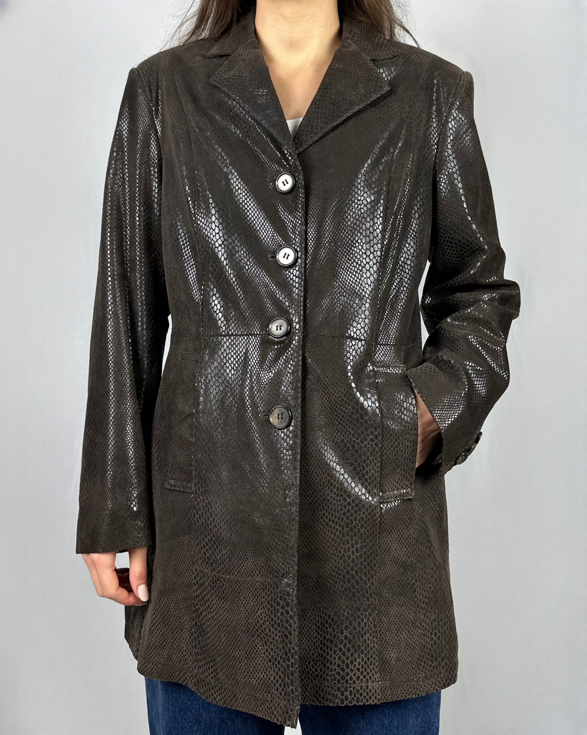 Trench in vera pelle stampa serpente